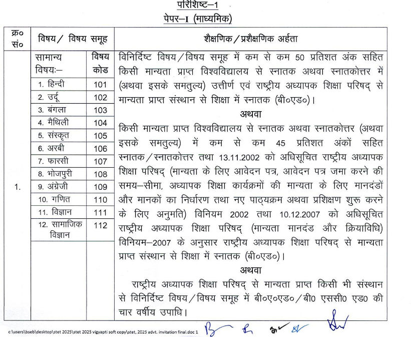 • Bihar STET exam will have multiple choice questions. Each question will carry 1 mark and there will be no negative marking.