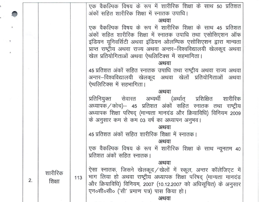 Secondary (Class 9th and 10th) Paper I Bachelor Degree in the concerned subject with 50% Marks and passed in B.Ed Exam OR Master’s Degree in concerned subject and B.Ed Examination passed OR Bachelor Degree / Master Degree with a Minimum marks of 45% (As per NCTE Norms) with B.Ed OR 4 Year Course BA BEd / BSc BEd Exam Passed OR Equivalent from any Recognized University / Board/ Institutions in India.