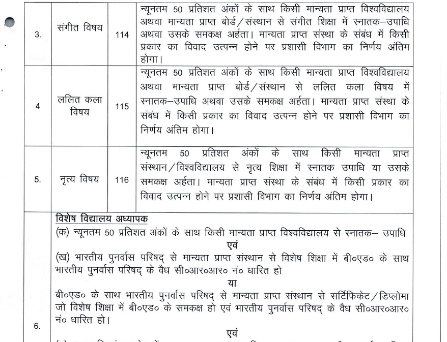 Senior Secondary (Class 11th and 12th) Paper II B.Ed. degree (not necessary for computer science) and a postgraduate degree in the field with Second Division. Candidates in the SC, ST, EBC, BC, and Dibyang categories receive a 5% mark relaxation.