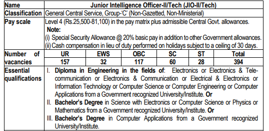 - Age relaxation for the IB Junior Intelligence Officer Grade II Recruitment position as per regulations.